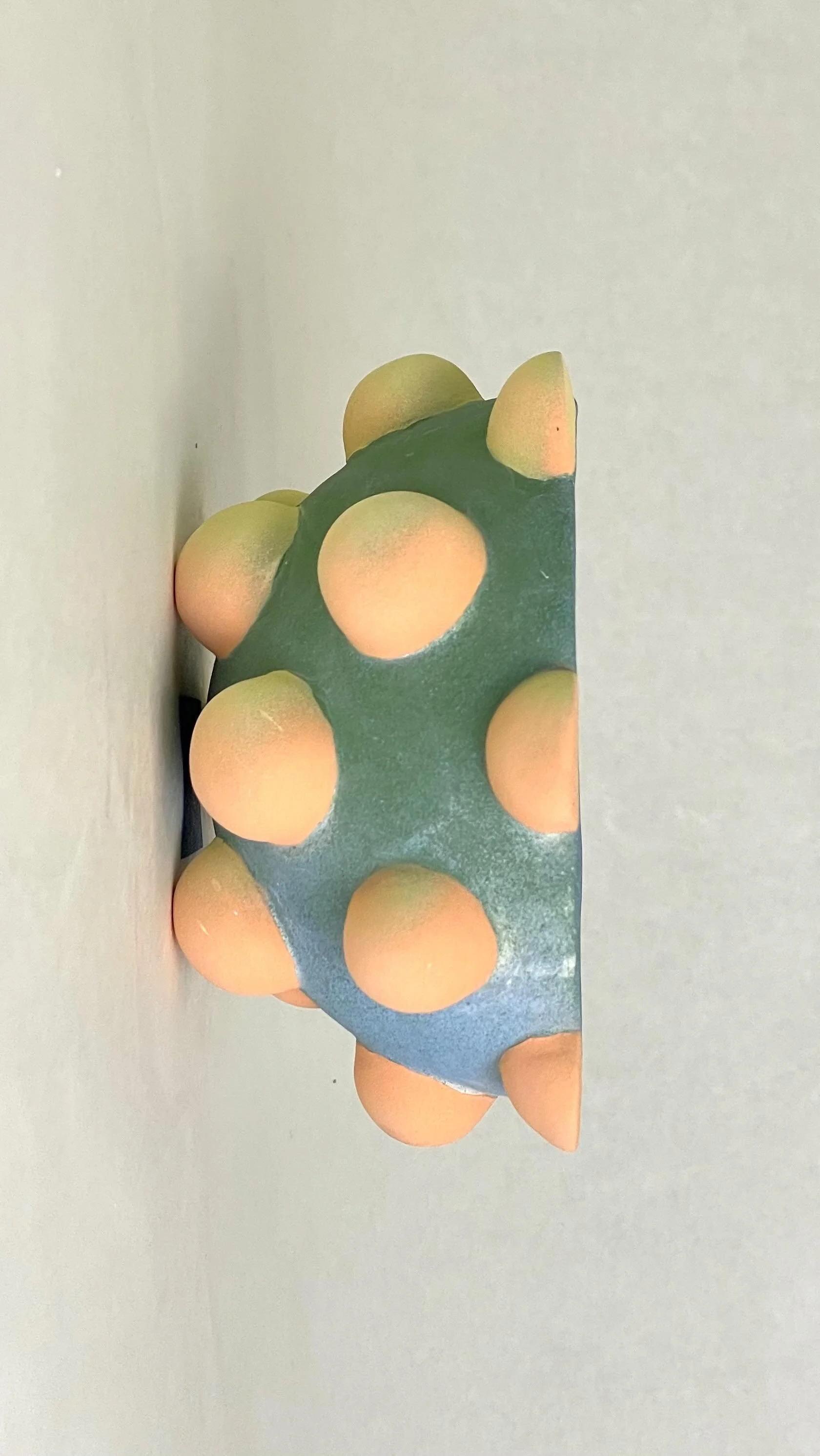 Through these playful forms, colors and textures I began to explore concepts of Feminine and Masculine aesthetics. In my earlier work you can find flower elements with warm colors and in contrast, cool tones on my spike elements. Pointy shapes and darker colors feel more Masculine to me, while viewers have shared that color and shape combination resonates with their Feminine and vice versa. This inspired me to re-arrange colors by putting what I assumed were more feminine colors on masculine shapes, leading the viewer to question: are the pieces balanced in their Feminine and Masculine, or do they fully sway one way to the other.